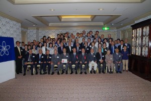 あっという間に懇親宴も終わりに近づき、全員で院歌斉唱し、散会となり、終了後ホテル庭園にて