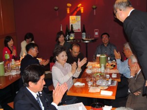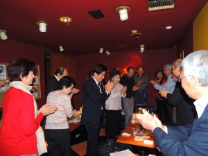 2014.11.08 全国支部:東京北桜友会 「日本酒とお料理を楽しむ会」のご報告 平成26年11月4日(火)青山「ひだまり」にて、「日本酒とお料理を楽しむ会」を昨秋に続き、開催致しました。今回は、酒学師の大久保先生にお越し頂き、日本酒のお勉強もさせて頂きました。数種類の日本酒を呑み比べたり、先生にお酒に関する質問にお答え頂きながら、美味しいお料理・日本酒と楽しい会話に、一同時間が過ぎるのも忘れてしまう程でした。同店顧問の岡村 芳真 様(46・経)には、6枚もの日本酒に関する印刷物をお作り頂き、今回も大変お世話になりまして、心より感謝申し上げます。 東京北桜友会 グルメ部会武井 美子(54・経)