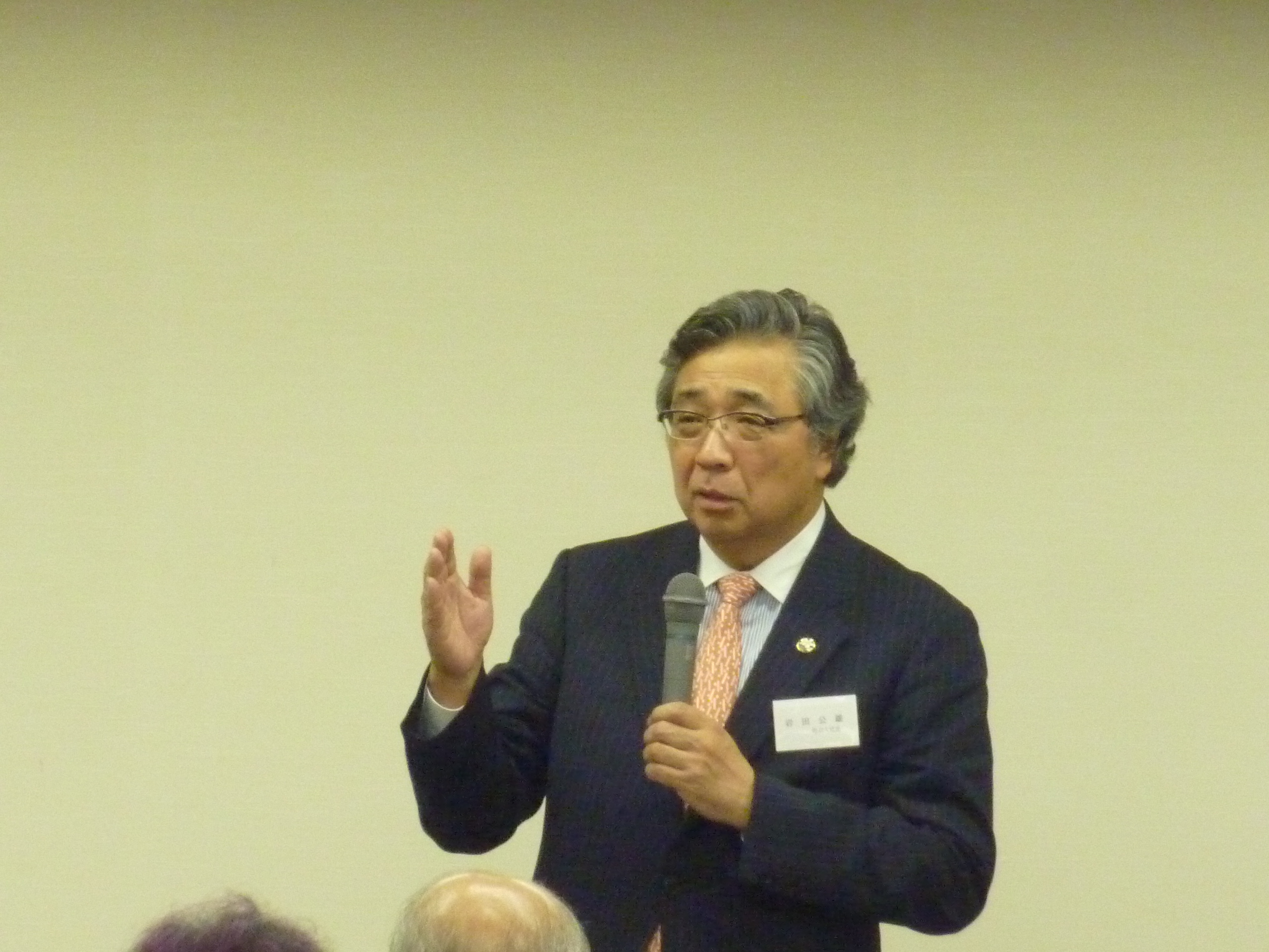 日本が今後の成長戦略含め極めて大事な時に来ているときに、“政治がこういう状況で果たしていいのか?日本が将来アジアの孤児にならないようにするためにどうしたらいいか?”みなさん考えなければいけない時だと思うのです。日本のこれからの若い人の教育の問題とか、もう一度作り上げなければならないと思います。かつての明治維新の日本。終戦後の日本みたいに、エネルギーを統一して日本の再生を図ろうとしている中で、技術とかが外国に負けているわけではありません。これからはやはり海外です。今日も竹中さんと一緒でしたけど、“岩田さんね。ダボス会議のアジア版をやったとして、韓国人が運営したら、全ての分科会を英語で行っても誰も困らない。”と言われました。日本ではそうはいきません。やっぱり教育の問題は大事です。これからの学生にどういう環境を作ってあげて、学習院という素晴らしい環境の中で、かつ学生一人一人に意思を持たせるような教育をしていかなければダメだと思います。学習院は、環境が良くてのんびりして、確かにいい生徒さんばかりだと思いますけれども、もう一度先輩方が強い意思をもって生きてきたように、一人でも自立して飛び込んでいくような生徒をどんどん輩出して、世の中に出て行って、日本の再生とか、輝ける時代を築く学習院の後輩が出てくるのを期待するとともに、その一助となるなら、またいろいろなことをやらせていただければと思っています。最近は桜友会のバッジをつけてほとんど番組に出ています。今はプロデューサーもあきらめて、“また学習院のバッジをつけているよ。”と言われていますが、これからも胸にはバッジをつけて活動していきます。学習院のさらなる発展の一翼になれればと思っております。まだまだ現役として、本当に、生涯一記者と思っていますので、会社からとか世の中から、“もういいよ”と言われないように、張り切ってもうしばらくはやらせていただきますので、是非またご指導ご鞭撻宜しくお願い致します。