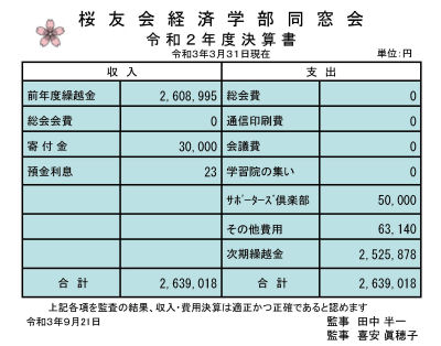 今後とも経済学部同窓会へのご支援よろしくお願い申し上げます。
