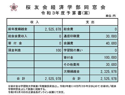 今年の第40回学習院桜友会経済学部同窓会総会、講演会、懇親会はコロナ感染防止