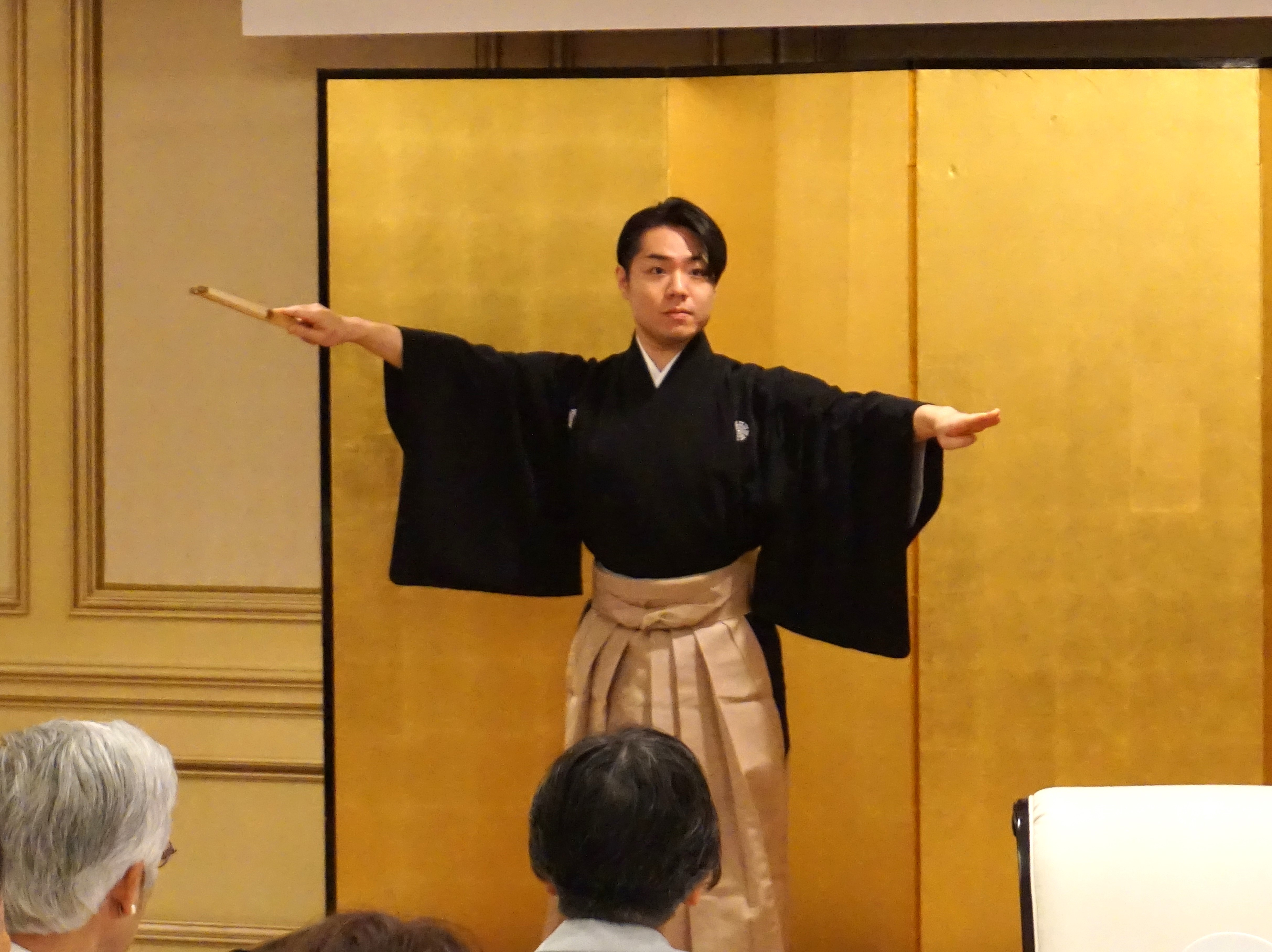 第1部 講演ならびに懇親会は、まず、学習院長 耀英一様、学習院女子大学学長 大桃敏行様よりご祝辞を賜り、続いて、歌舞伎界の若きホープ、学習院ご出身の中村鷹之資様に「歌舞伎の未来」との演題でご講演いただきました。平成20(2008)年6月に開催された第50回総会・懇親会では、お父様の中村富十郎様に「延年の舞」をご披露いただきましたが、この度、親子二代でのご登壇となりました。長唄「七福神」の舞踊からスタートしたご講演は、変わることのない伝統と、時代に合わせた変化、そのバランスをとりつつ発展してゆく歌舞伎の可能性と未来について、舞台写真を投影しながらお話しくださいました。会場は温かな笑顔と大きな拍手に包まれました。会食のお時間には常陸宮妃華子殿下のご臨席を賜り、桜友会会長 諸戸清郎様の乾杯のご発声で、ご来賓や会員の皆様と和やかに美味しいお食事を楽しみました。