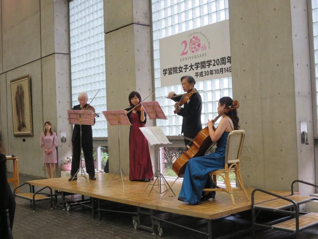 平成30年10月14日、戸山キャンパスにて、学習院女子大学20周年記念同窓会が開催されました。やわらぎホ-ルでは、神田典城学長のご挨拶、内藤政武院長のご祝辞、記念映像の放映に続き、永井和子元学長のご講演を伺いました。「戸山」という地をテーマに短大、女子大の歩みをご自分の思い出を交えてお話して下さいました。その後、互敬会館に場所を移し、東園基政桜友会長のご祝辞のあと、安堂洋子草上会長の乾杯の発声で祝宴が開催。神田学長やOG,OB管弦楽団の記念演奏や、現役学生の各団体によるイベントなどが披露されました。懐かしい先生方や短大・女子大を交えての同窓の皆さまと、母校での和やかな一日を過ごすことが出来ました。