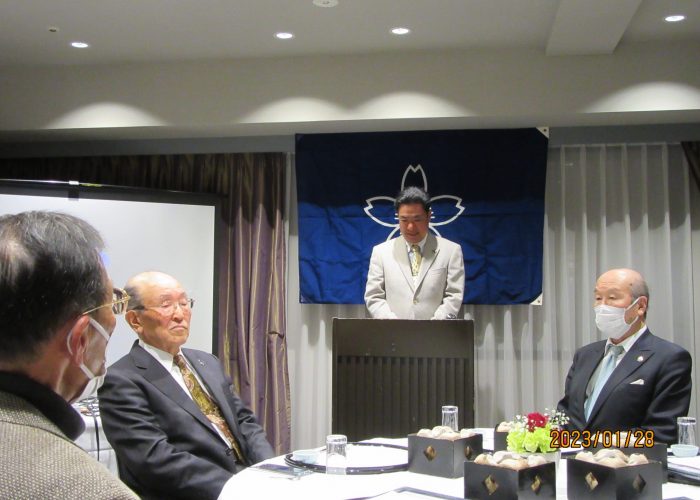 令和5年1月28日(土)徳島市グランドパレス徳島において、総会新年会を開催いたしました。コロナ禍により3年ぶりの開催となりました。本部より桜友会東園基政会長のご臨席を賜りました。開会にあたり、本年1月8日に76歳にてご逝去されました徳島桜友会会員の青柳裕志様に黙祷を捧げました。