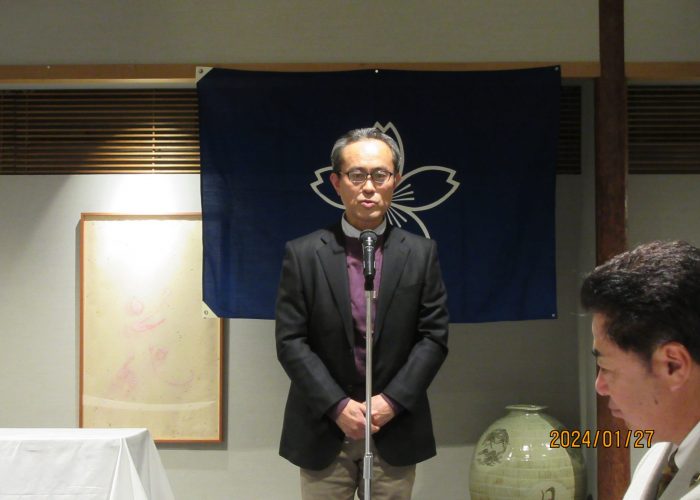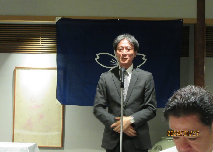 2024.02.01 全国支部:徳島桜友会 令和6年度総会新年会を開催 令和6年度総会新年会を1月27日土曜日午後6時より、徳島市ホテルグランドパレス徳島にて開催いたしました。桜友会本部より田中半一副会長のご臨席を賜りました。総会では令和5年度事業報告、決算報告、令和6年度事業計画案、予算案の審議が行われ、承認されました。また、今回2名の新会員がご出席され、自己紹介があり、その後、徳島桜友会近藤副会長の乾杯の発声にて新年会を開始。新年会では参加会員の近況報告が行われ、最後に院歌斉唱し、お開きとなりました。12名の参加でありました。