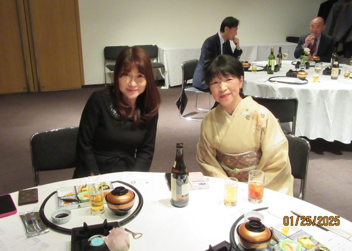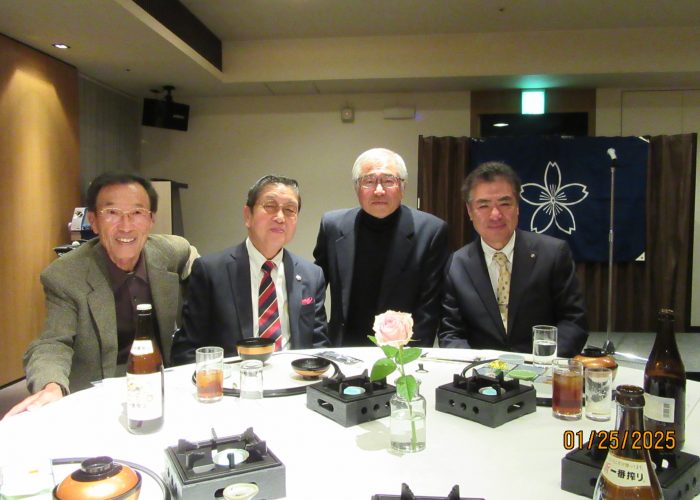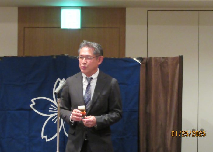 2025.01.29 全国支部:徳島桜友会 令和7年度総会新年会を開催 令和7年度総会新年会を1月25日(土)午後6時より、徳島市ホテルグランドパレスにて開催いたしました。今回は桜友会本部より諸戸清郎会長のご臨席を賜り、14名の参加でありました。黒田浩司会長(昭和58経済卒)のご挨拶に始まり、諸戸会長よりご祝辞を頂戴しました。引き続き令和6年度事業報告等、議事を進行し総会終了。徳島桜友会近藤美郷副会長(昭和57経済卒)によります乾杯の発声で新年会が始まりました。途中、出席会員皆さまの近況報告をしていただき、また島田孝枝様(昭和57経済卒)によります日本舞踊のご披露がございました。最後は朝田寛様(昭和39政経卒)の一本締めにておひらきとなりました。