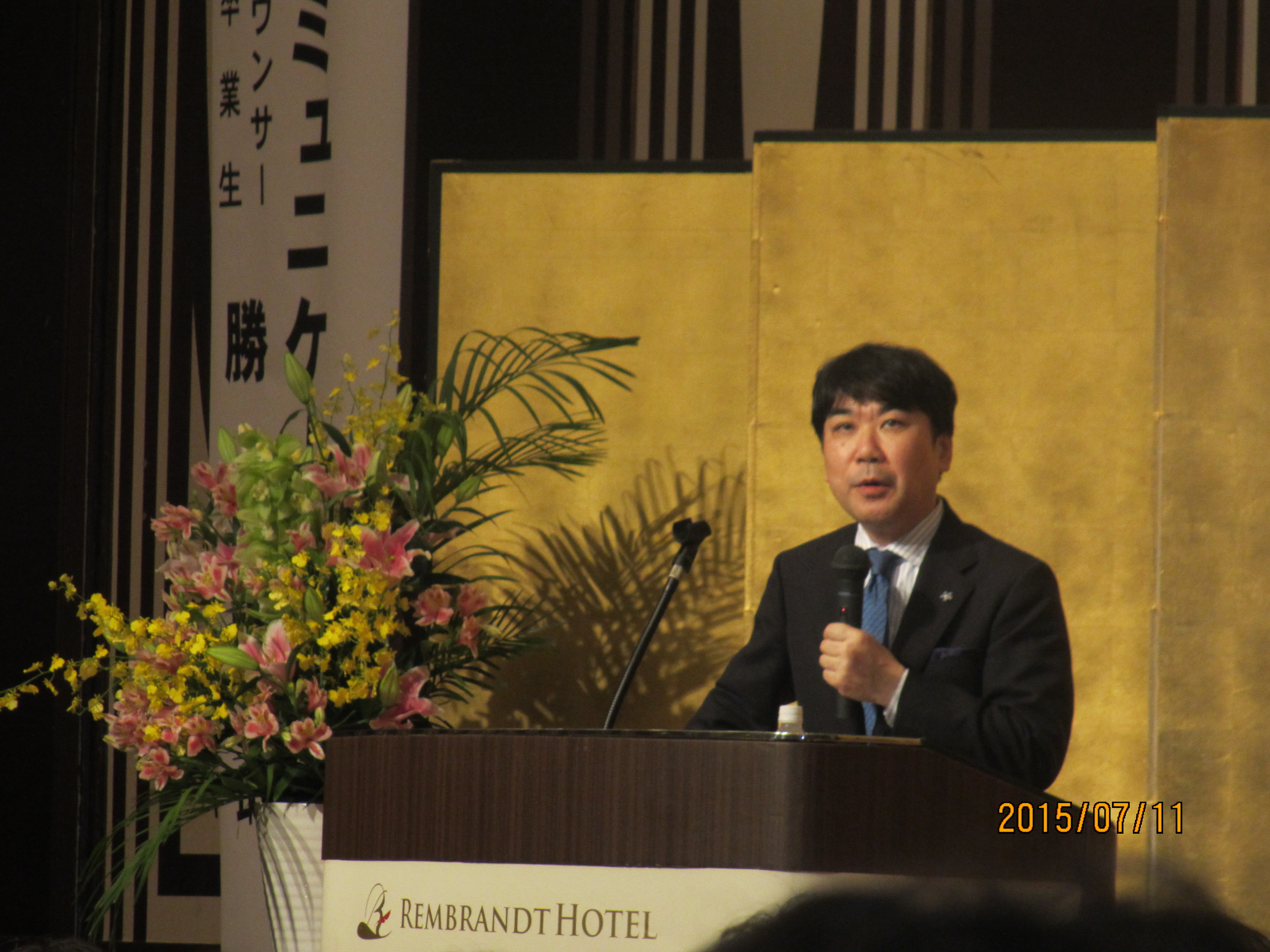 学習院大学長の井上寿一氏と学習院卒業生でフリーアナウンサーとして活躍されている勝恵子氏の講演のあと、卒業生・父母関係者約80人が参加しての関係者懇談会も行われました。