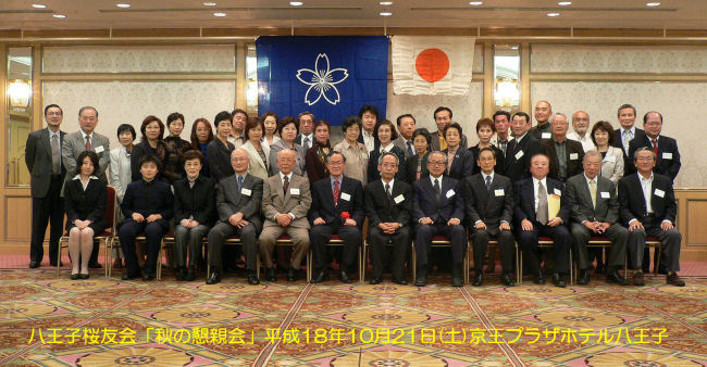 平成18年10月21日八王子京王プラザホテルにて「秋の懇親会」を開催いたしました。講演会は、元明星大学長、国立天文台名誉教授さらに府中桜友会長でおられる日江井栄二郎先生のお話。「太陽は銀河系の中心から約3万光年の所に位置し、誕生してから今日までに23回銀河系を回っている。つまり太陽は23才。」「原子は、星が造ったもの。私たちは星の子」