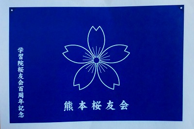令和3年に学習院同窓会「桜友会」は創立100周年を迎えました。11月14日に学習院百周年記念会館において100周年式典・特別講演が挙行されたところですが、その記念事業の一環として全国の各支部名が印字された「100周年記念桜友会旗」が作製され、当支部へも贈呈されました。今後、支部行事が再開されたおりに披露活用していきますので、お知らせします。