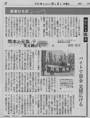 「わたしを語る」第5回(6月2日掲載)の記事中において熊本桜友会の人脈や活動について語られています(写真は記事イメージ)。