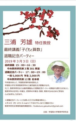 三浦芳雄特任教授 最終講義「子どもと算数」・懇親会 のご案内