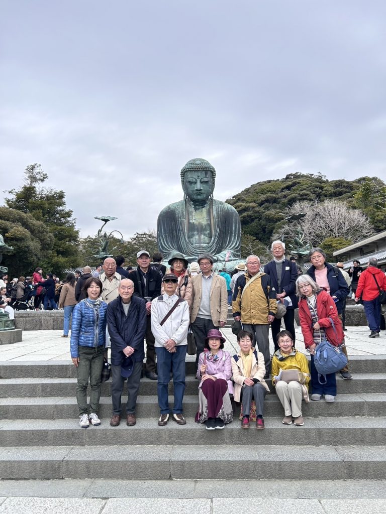2024.03.30 全国支部:湘南桜友会 第31回春のウォーキング会 令和6年3月29日(木)、春のウォーキング会が開催されました。江ノ電長谷駅に8時50分集合、長谷寺⇒高徳院 鎌倉大仏⇒鎌倉駅⇒銀座アスター(昼食)⇒浄光明寺⇒扇ケ谷 岩船地蔵堂を廻りました。今回もお地蔵様、仏像に詳しい中島幹事のご説明で、知識を深めることが出来ました。浄光明寺は、駅から少し離れた場所にあり、静かなお寺で、重要文化財である阿弥陀三尊像を拝観し、中世の横穴式墳墓「やぐら」など見学しました。お天気は曇りで一時は雨も降りましたが、咲き始めた春の花を楽しみながら最後まで予定通り歩くことができました。