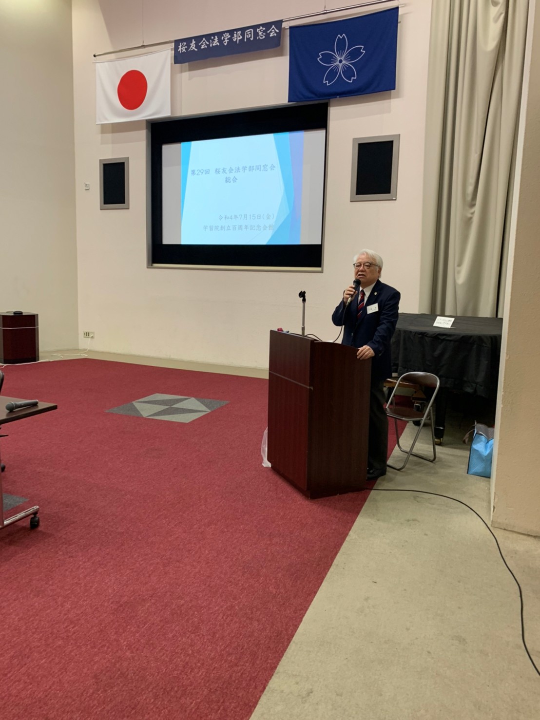 令和4年7月15日、第29回法学部同窓会総会・講演会が開催されました。今年度は3年ぶりに学習院創立百