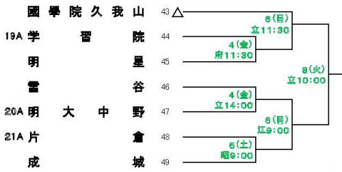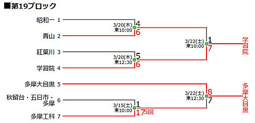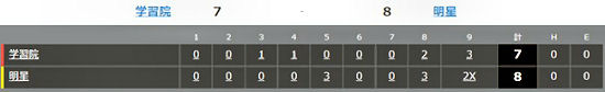 | 対戦結果 | 学習院 7 対 8 明星高校 |