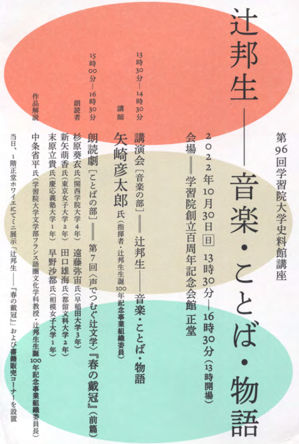 学習院大学史料館講座「辻邦生-音楽・ことば・物語」係
