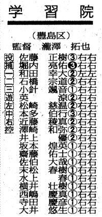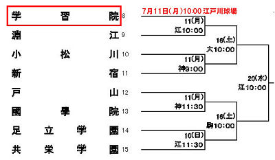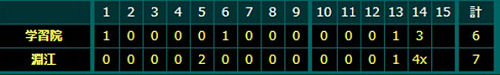 | 学習院高等科 6 対 7× 淵江高等学校 延長14回タイブレーク |