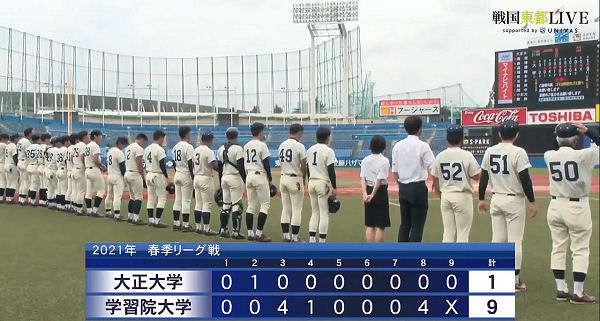| 6/22(火) | 大正大 1-9 学習院大 | ― | ― |