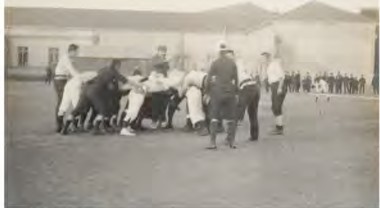 2013(平成25)年秋、古書店から「学習院グランド・明治三十年代ラグビー試合風景」と表題のついた古